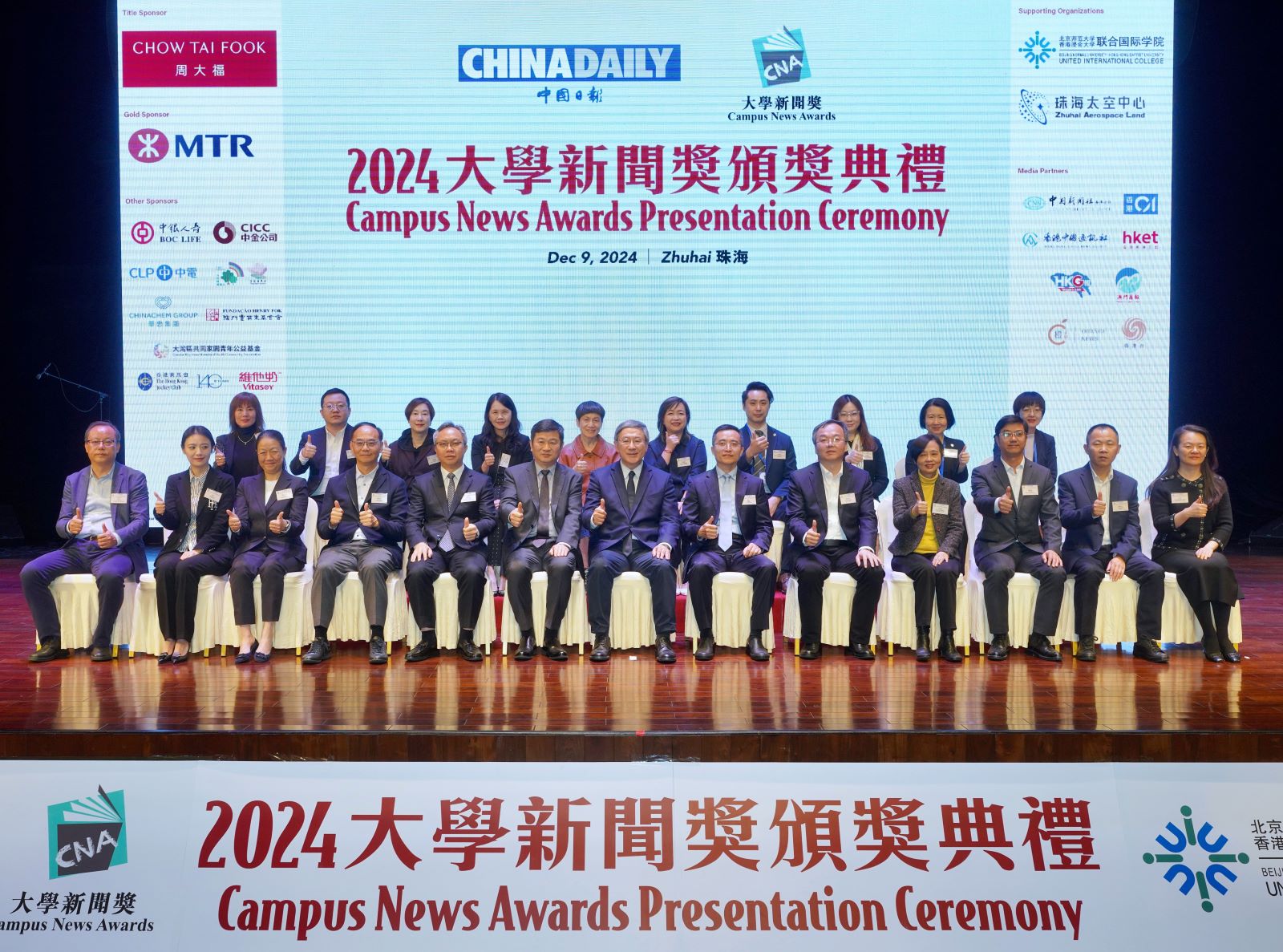 周大福珠宝集团荣幸连续两年成为《中国日报》大学新闻奖的冠名赞助商。 奖项致力于表彰并培育年轻新闻人才。 2024年12月,颁奖典礼在广东珠海隆重举行,这场充满创意、热情与新闻卓越的盛会,汇聚了来自全国各地的学生记者,以表扬他们的杰出成就。